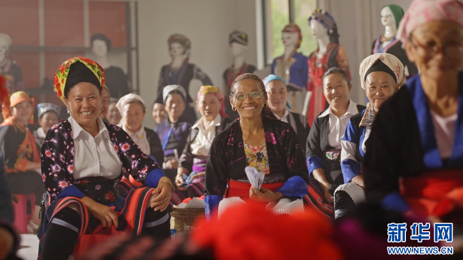 金水河镇伉偭小镇群众在缝制民族服饰(资料图)。新华网发(金平县委组织部供图)