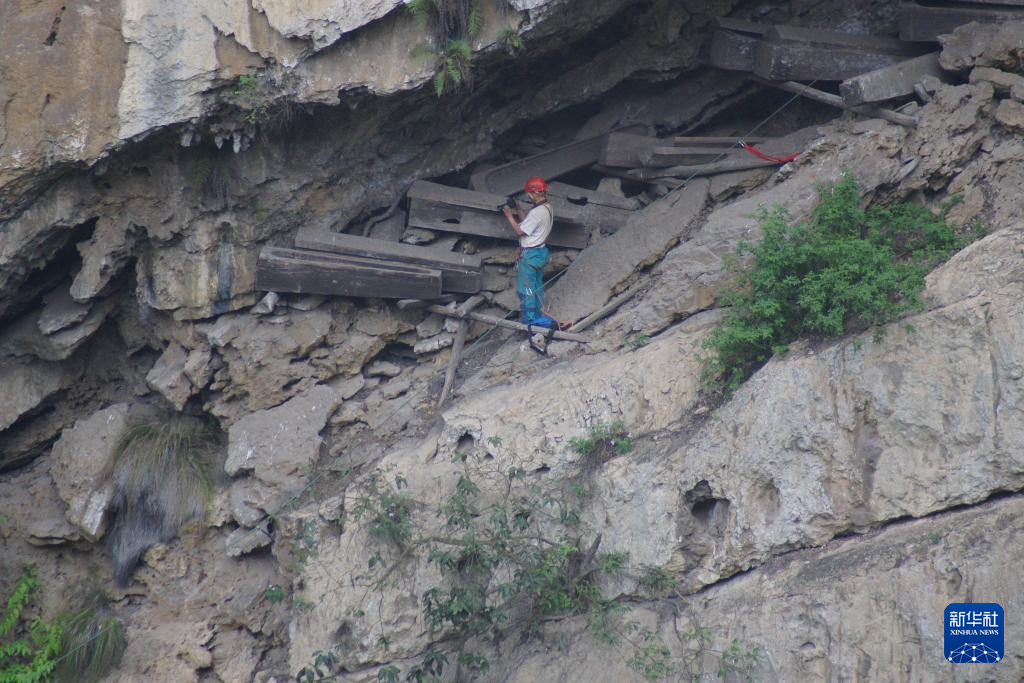 在云南昭通,考古人员在观察记录悬棺葬(资料照片)。新华社发