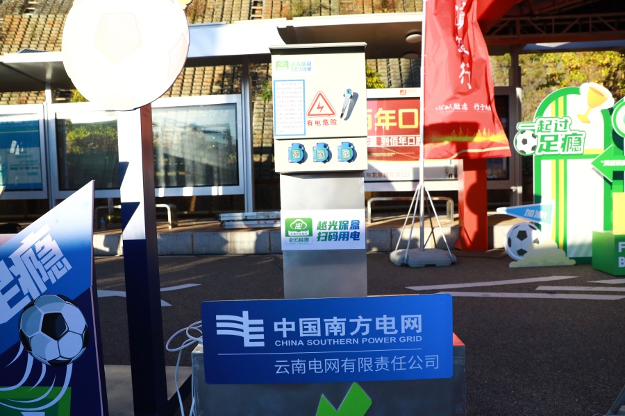 玉溪供电局在赛场外创新推出“扫码用电”服务,商户通过手机扫码即可使用统一提供的临时绿电(11月28日摄)。代薇 摄