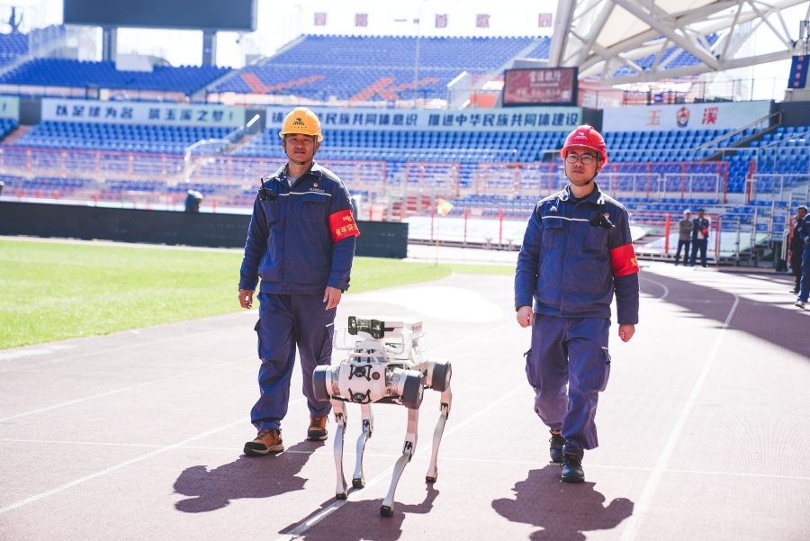 红塔供电局带领“吠云”机器狗,对赛场进行巡视(11月29日摄)。方宇 摄