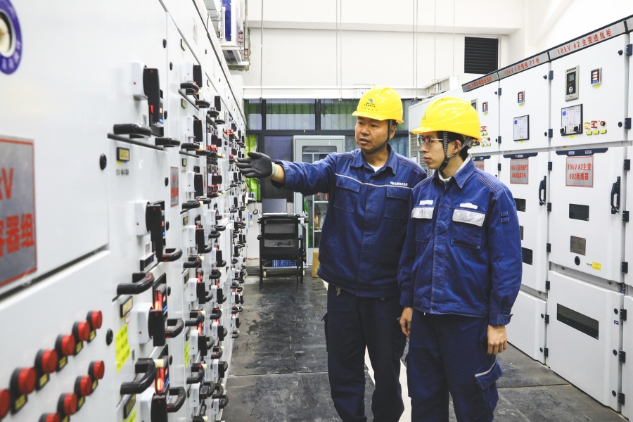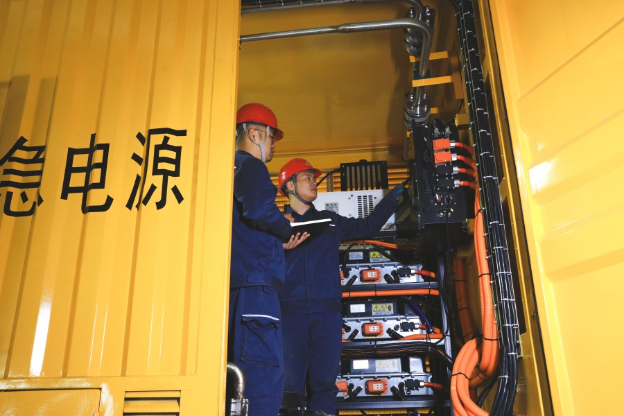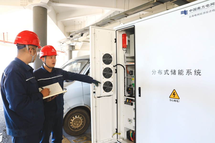 红塔供电局工作人员对分布式储能系统进行检查(11月28日摄)。代薇 摄
