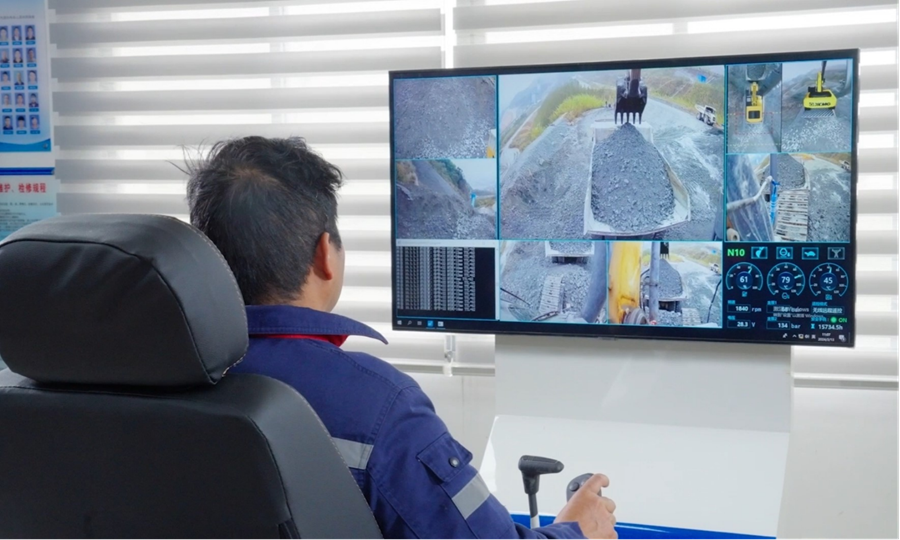 唯有“绿”“智”融合,才能真正激活矿业发展内生动力。在华联锌铟金竹山资源再生车间堆场,技术人员在挖掘机驾驶室、动臂上安装摄像头,可以实时传输视频信号,配备高精度传感器监测设备状态,通过5G网络实现高清视频和控制信号的实时传输,操作人员能够实时掌握挖掘机的工作状态并进行远程操控。