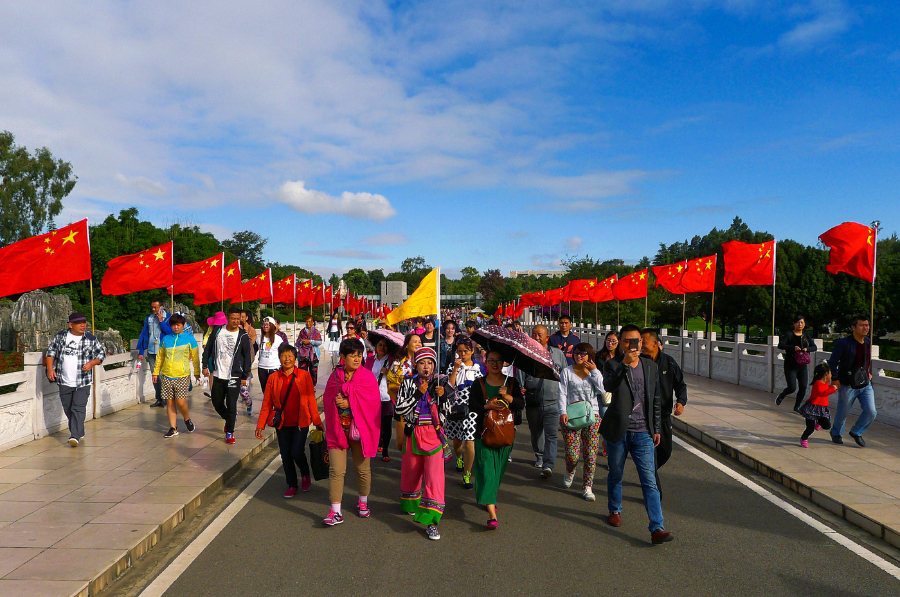 在石林县,天南地北的游客与当地各族群众摩肩接踵,悄然打破地域与民族的界限,在行走中缔结深厚情谊。