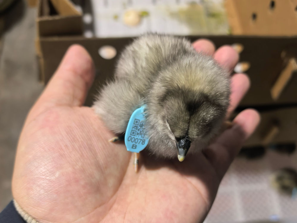 刚戴上二维码“身份证”的鸡苗(2025年12月4日摄)。