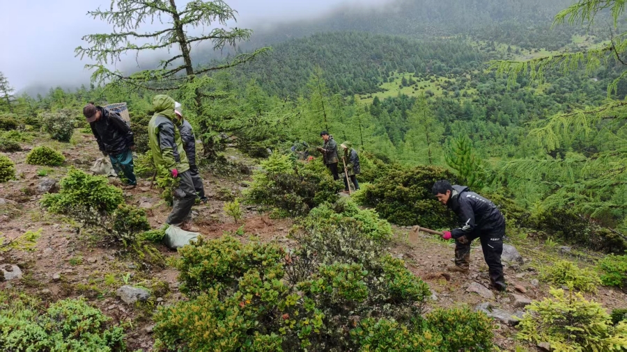 森林管护员在种树(资料图)。香格里拉市国有林场洛吉分场 供图