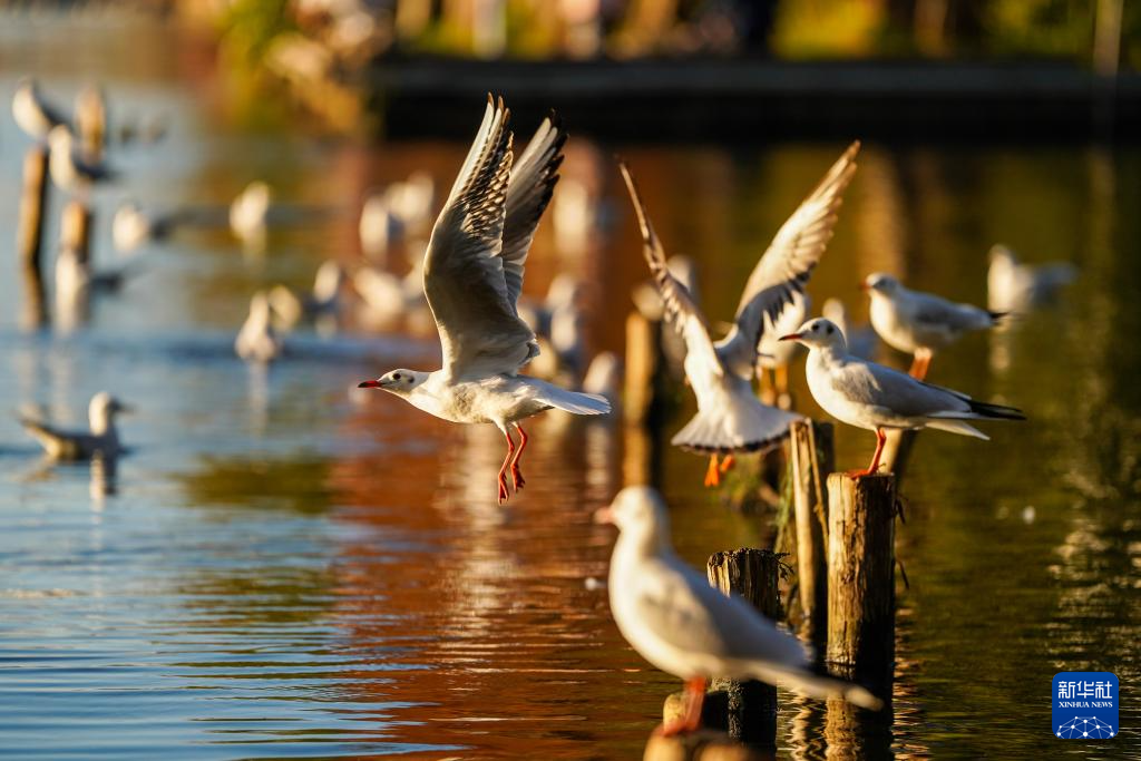 12月10日在滇池畔的星海半岛生态湿地拍摄的红嘴鸥。新华社记者 彭奕凯 摄