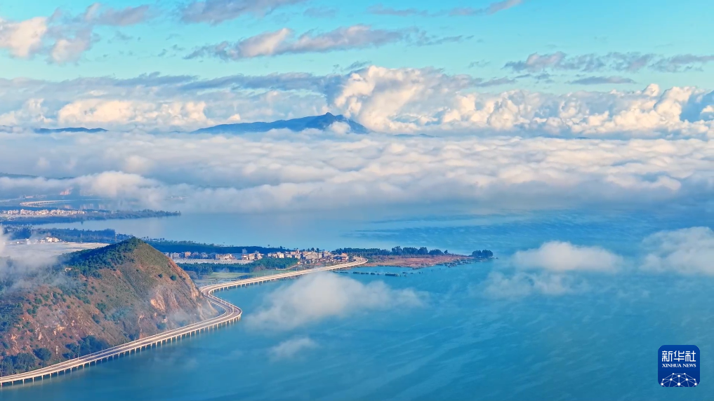 滇池南岸:云海如潮绘画卷