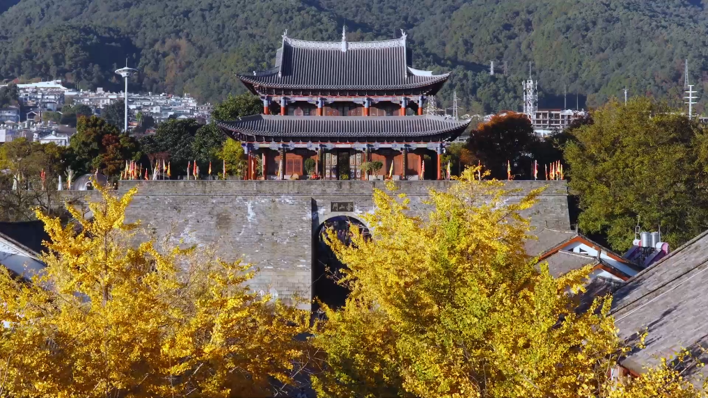 仲冬时节,大理古城周边的冬日美景如约上线,银杏进入最佳观赏期,古城巷道、三塔景区、乡村院落间的古树均换上“金衣”。