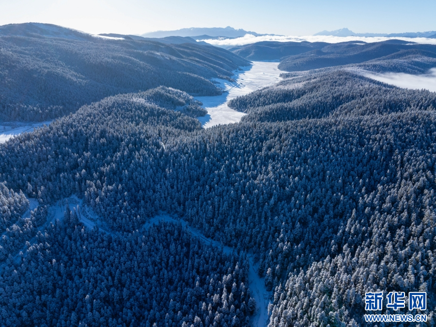 在属都湖、碧塔海等区域,雪后森林间,光线穿过挂满冰晶与积雪的枝桠,投下道道光束,林间雾气缭绕,展现出与往日氛围截然不同的静穆之美。(完)