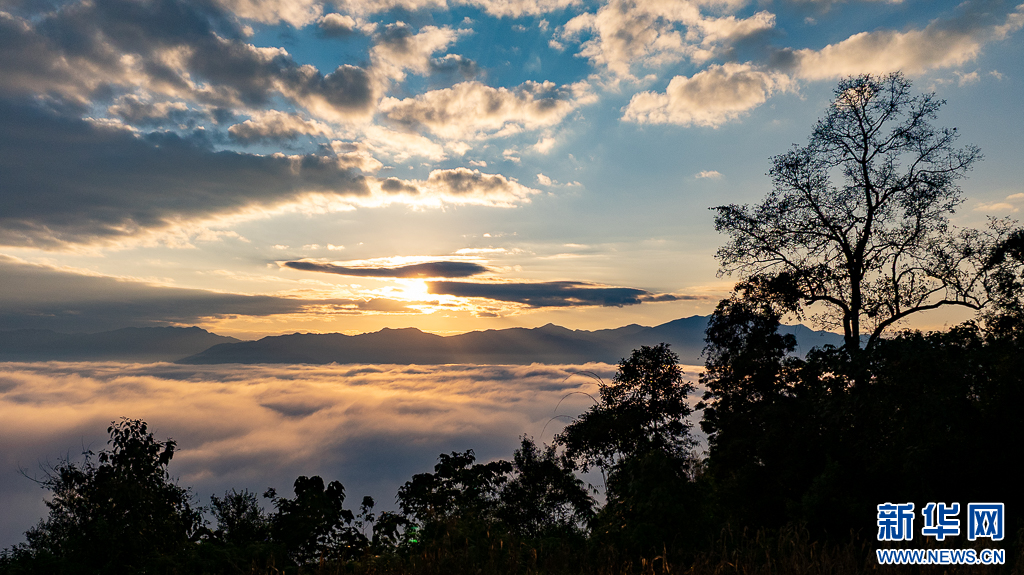 在云南省普洱市景谷傣族彝族自治县的群山之巅,冬日云海如潮涌。当晨光初露时,云浪与峰峦尽染霞光,勾勒出一幅恢弘的天地画卷。(完)