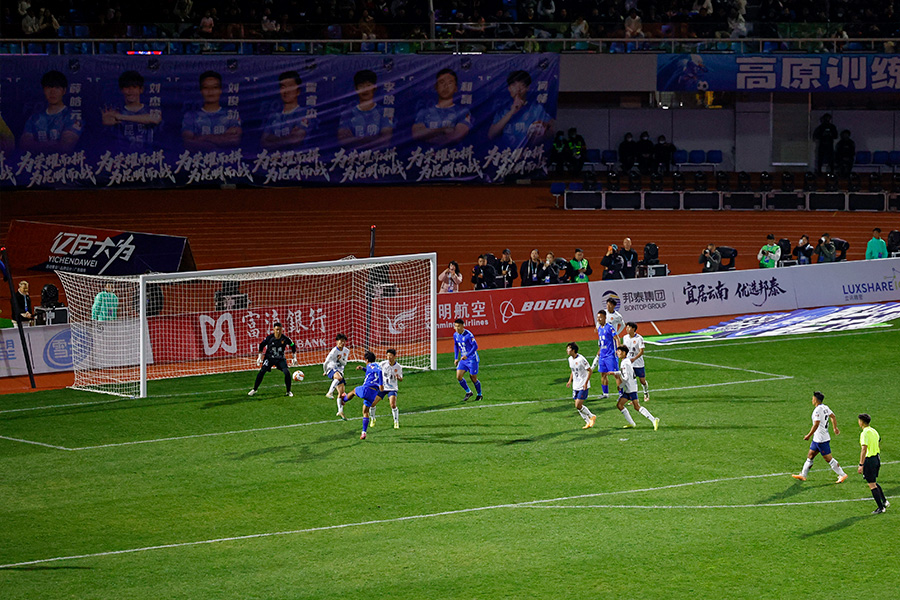 昆明队进球瞬间(12月27日摄)。新华网发(杨桢宇 摄)