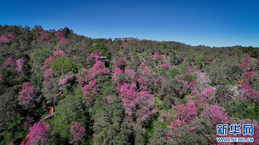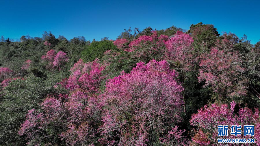 邦瓦山古树樱花谷樱花盛放(12月27日摄)。新华网发(段宗智 摄)
