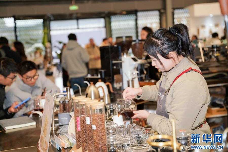 活动现场,咖啡师正在制作咖啡(1月8日摄)。新华网发(云南省委宣传部供图)