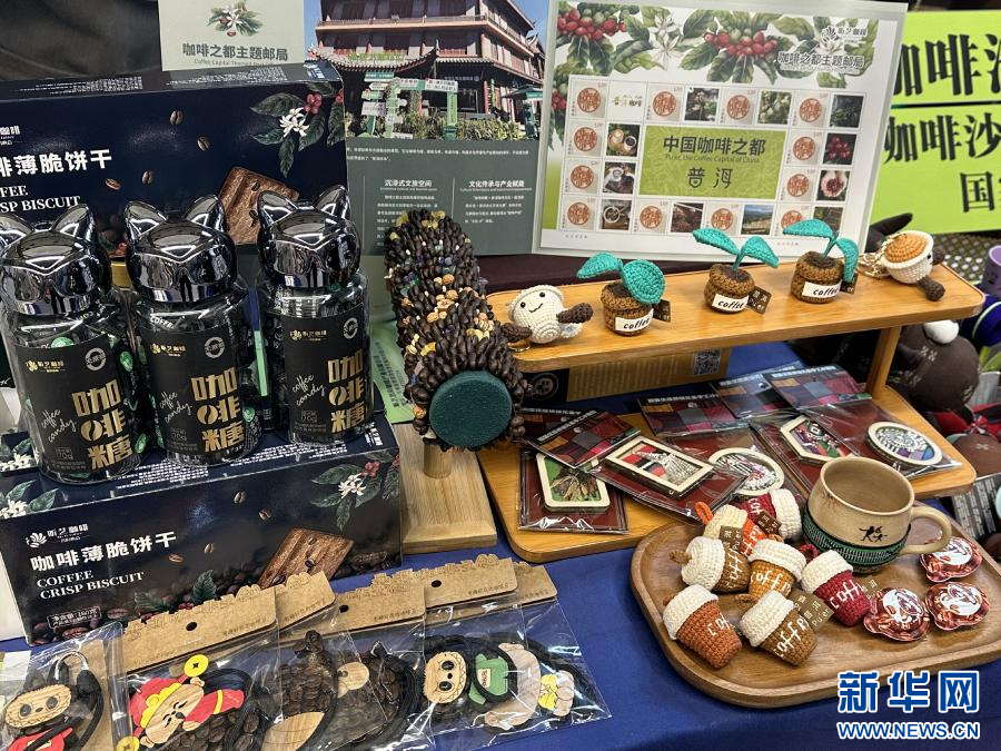活动现场展出的咖啡文创产品(1月8日摄)。新华网发(王梓如 摄)