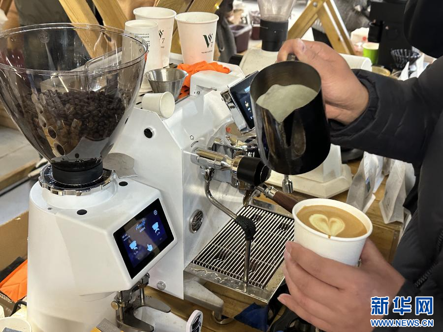 活动现场,咖啡师正在制作咖啡(1月8日摄)。新华网发(王梓如 摄)