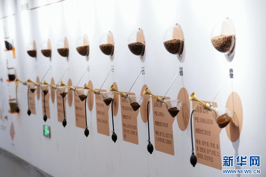 活动现场展出的各类云南咖啡(1月8日摄)。新华网发(云南省委宣传部供图)