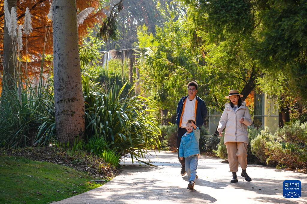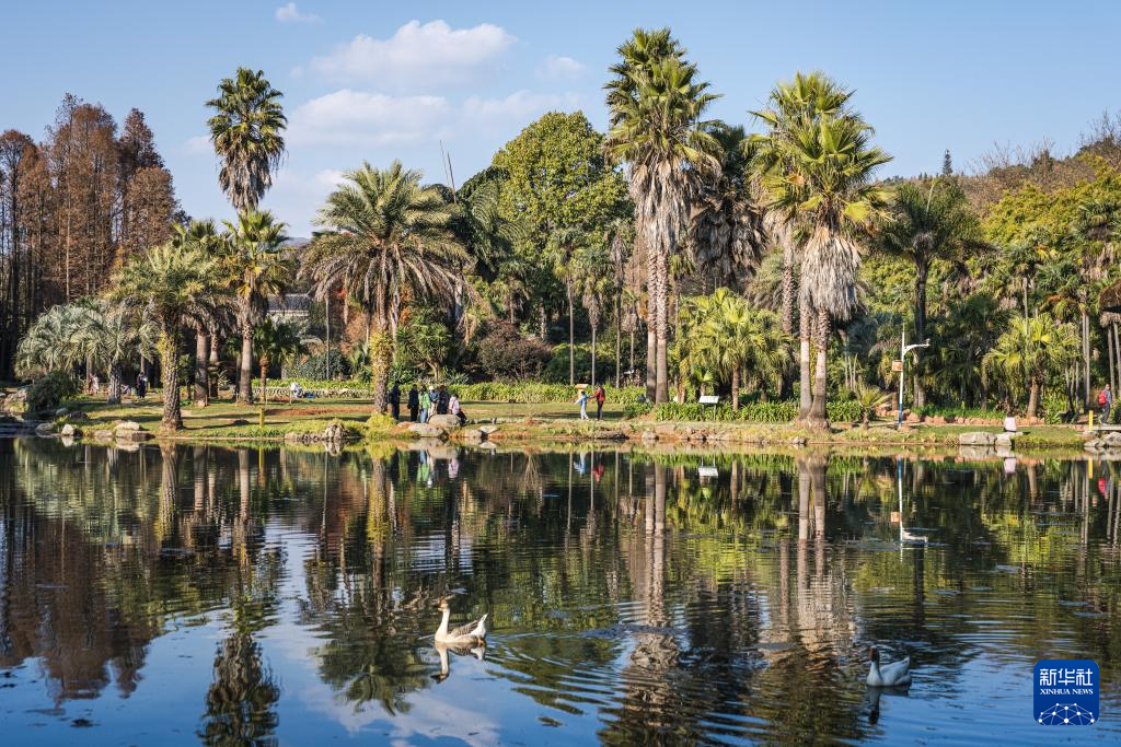1月10日,云南昆明天气晴好,市民游客在冬日的暖阳中漫步于昆明植物园,领略自然美景,尽享惬意悠闲的周末时光。