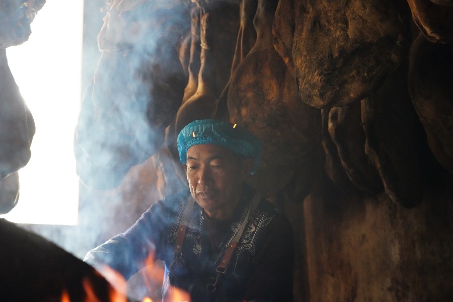 炊烟熏烤火腿(1月7日 摄)。