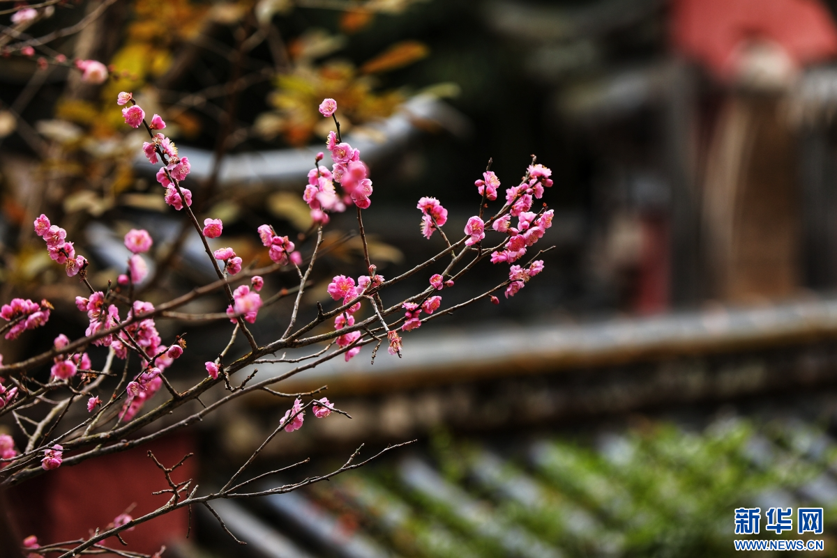 冬风未褪寒意,昆明黑龙潭公园梅花已陆续进入盛花期,次第绽放、暗香浮动。梅枝与屋檐、院墙相映成趣,在园林中铺展出一幅幅美丽的冬日画卷。(盘龙区融媒体中心)