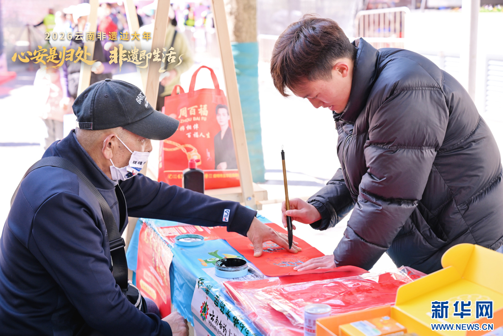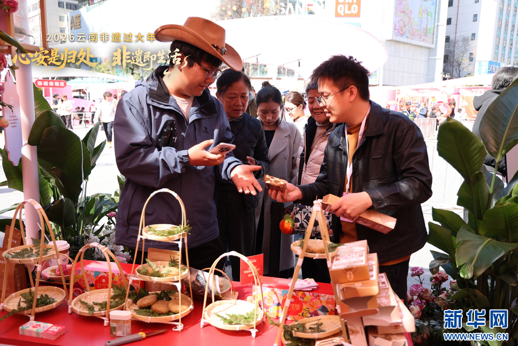 “心安是归处 非遗即生活”——2026云南非遗过大年活动于1月30日在昆明市五华区南屏街西口启幕,“桃花流水——非遗展演大观园” “兰泽芳晴——非遗康养大观园” “市井百工——淘宝中国宝贝·非遗年货大观园”“心安驿居——乡愁旅居大观园”四大“大观园”同步亮相。(完)