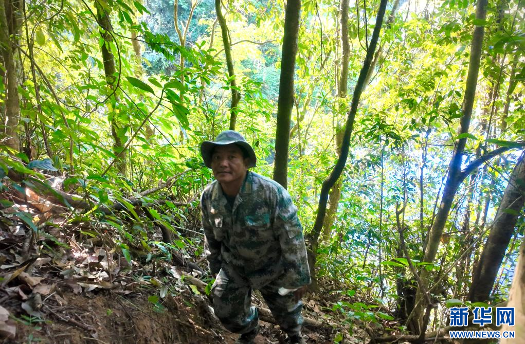 腊疯在山林里巡护。新华社记者 王贤思 摄