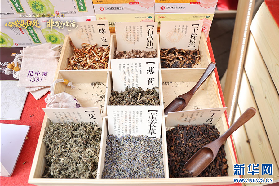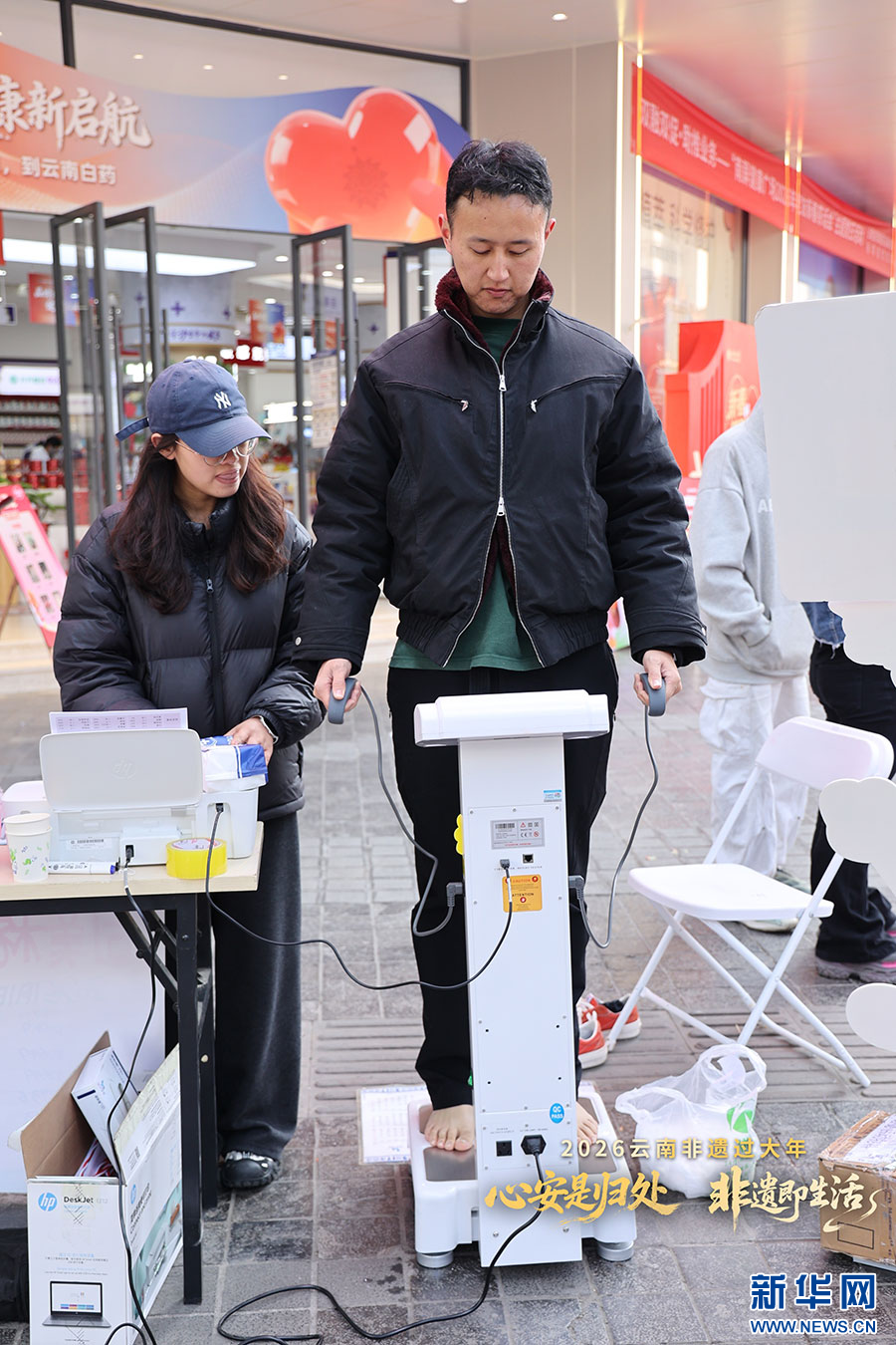 1月31日,云南省昆明市五华区南屏街西口广场人头攒动,“心安是归处 非遗即生活”——2026云南非遗过大年活动正如火如荼开展。作为活动四大“大观园”之一,“兰泽芳晴——非遗康养大观园”内呈现的各类传统医药项目和大健康产品,吸引了众多市民游客挑选体验。(完)