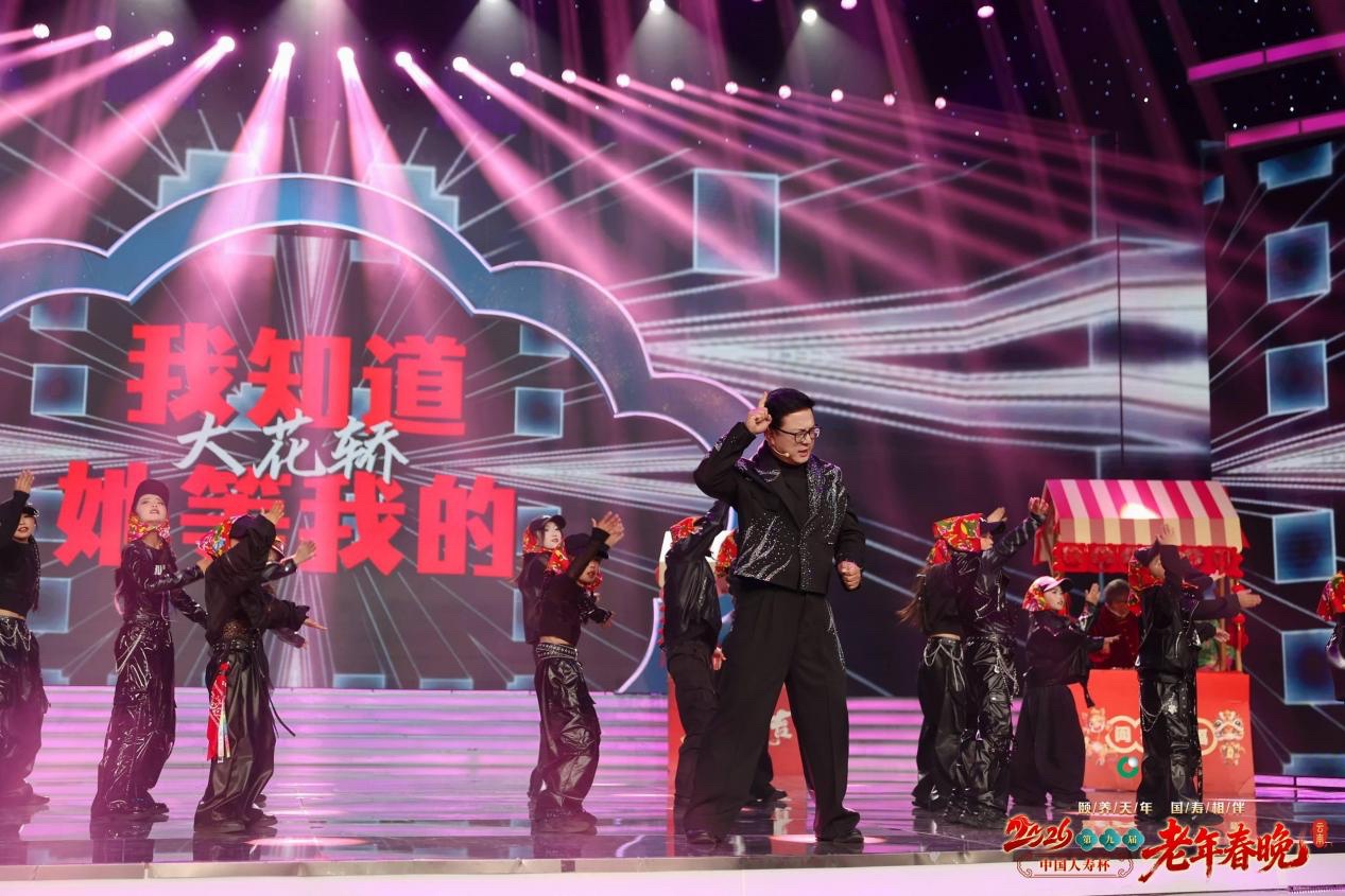 不同于传统晚会的单一观赏模式,本届老年春晚创新采用“主舞台+台下圆桌+沉浸式逛吃体验”三重场景联动,让年味可感可及。开场秀《吉祥中国年》中,剪纸、写春联、做糖人等传统年俗技艺现场展演,与经典年俗歌曲串烧、孩童童谣念白相映成趣,瞬间点燃节日氛围;互动环节中,年俗大师亲手制作的特色礼品作为灯谜奖品,让观众在猜灯谜的乐趣中收获满满年味,实现了 “看晚会、享年俗、领好礼”的沉浸式体验。