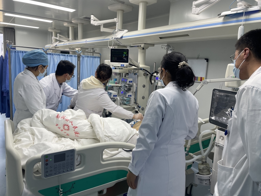 专家团在南涧县人民医院ICU病房进行指导(2月5日摄)。