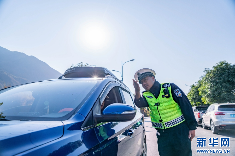 交警在交通干道保通保畅(2月11日摄)。新华网发(谢凌宇 供图)