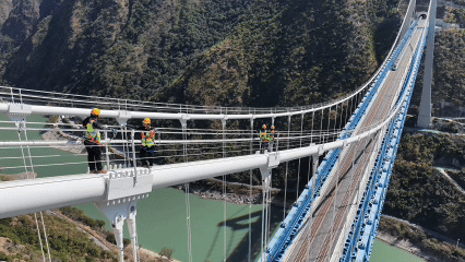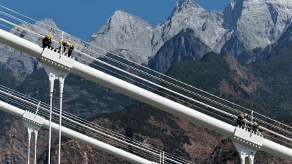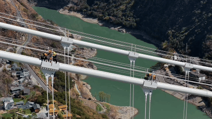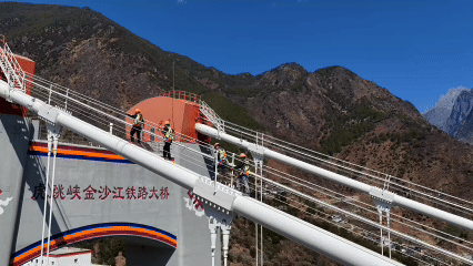 2026年春运期间,为确保旅客平安有序出行,国铁昆明局广通工电段新尚桥路工区的守护者们在高空作业。被誉为“雪山飞狐”的他们,定期对虎跳峡金沙江铁路大桥进行“体检”。