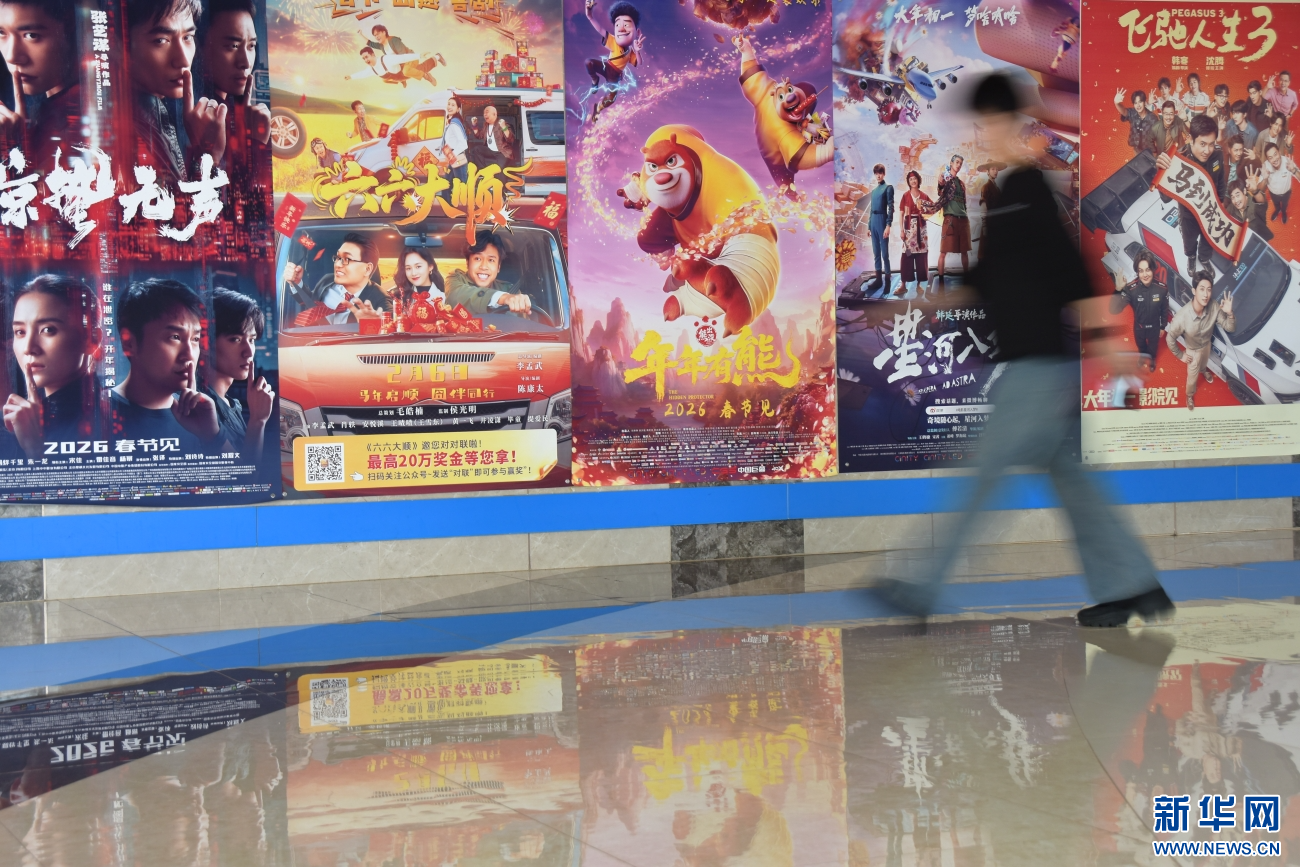 观众从云南蒙自一家电影院电影海报前经过(2月23日摄)。新华网发(薛莹莹 摄)