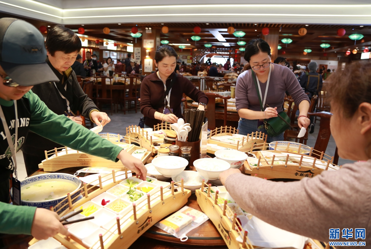 游客在云南蒙自一餐厅品尝过桥米线(2月18日摄)。新华网发(薛莹莹 摄)