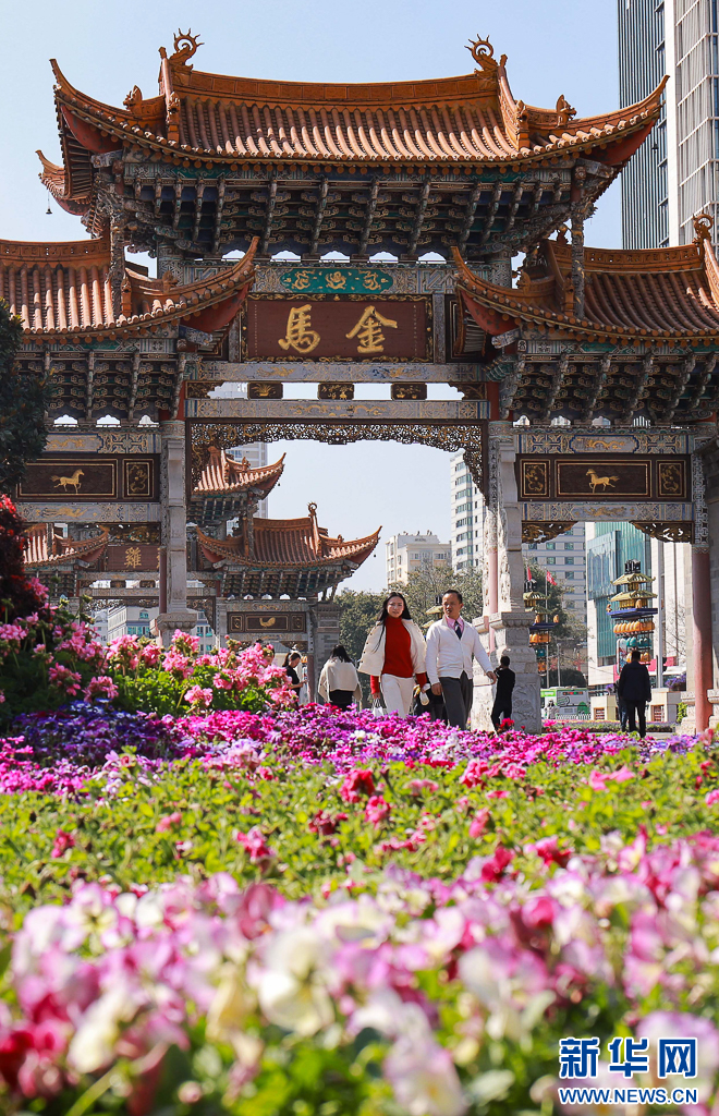 昆明金马碧鸡坊(2月18日摄)。新华网发(郑益 摄)