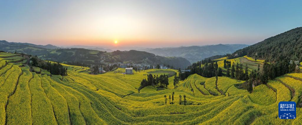 这是3月1日在云南省曲靖市罗平县马街镇拍摄的油菜花田(无人机全景照片)。新华社发(杨俊鹏摄)