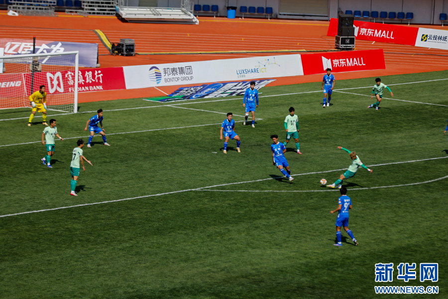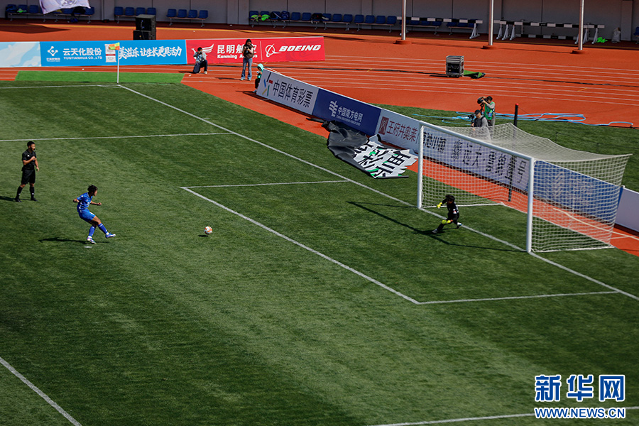 昆明队射门瞬间(3月1日摄)。新华网发(杨桢宇 摄)