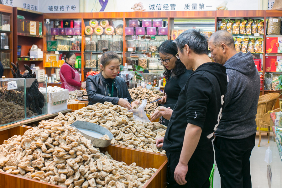 俊发·新螺蛳湾国际商贸城云品馆内的中药材(3月15日摄)。