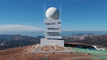 在云南省迪庆藏族自治州石卡雪山之巅,海拔4449米处,矗立着云南省海拔最高的气象监测枢纽——迪庆新一代天气雷达站。