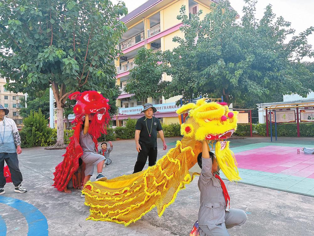 在元江县红军小学的操场上,一阵激昂的鼓点声中,学生们在傣族狮子舞非物质文化遗产代表性传承人封云国的带领下,手举色彩斑斓的狮头,如灵动的火焰般跃动起来。