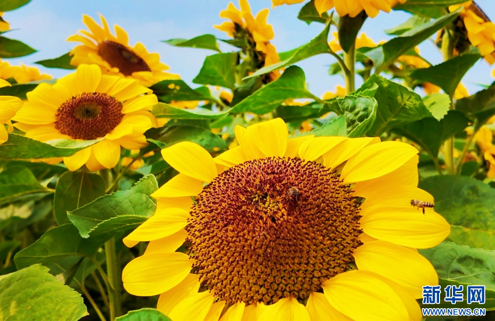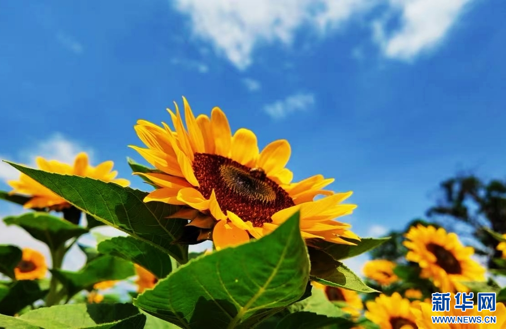 近日,云南省普洱市景谷傣族彝族自治县永平镇的向日葵竞相绽放。连片金黄花海在暖阳中舒展,花瓣随风摇曳,与蓝天白云相映,勾勒出春日里绚烂的田园景致。(邱海艳 杨舒涵)