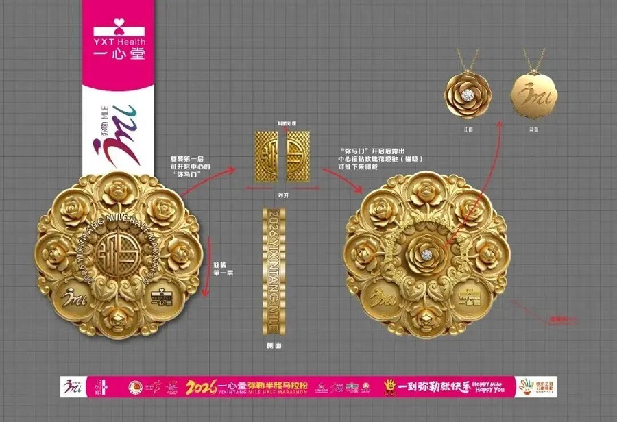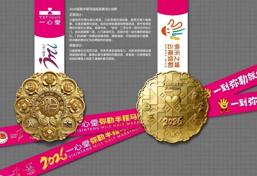 2026一心堂弥勒半程马拉松赛事完赛奖牌设计图(资料图)。