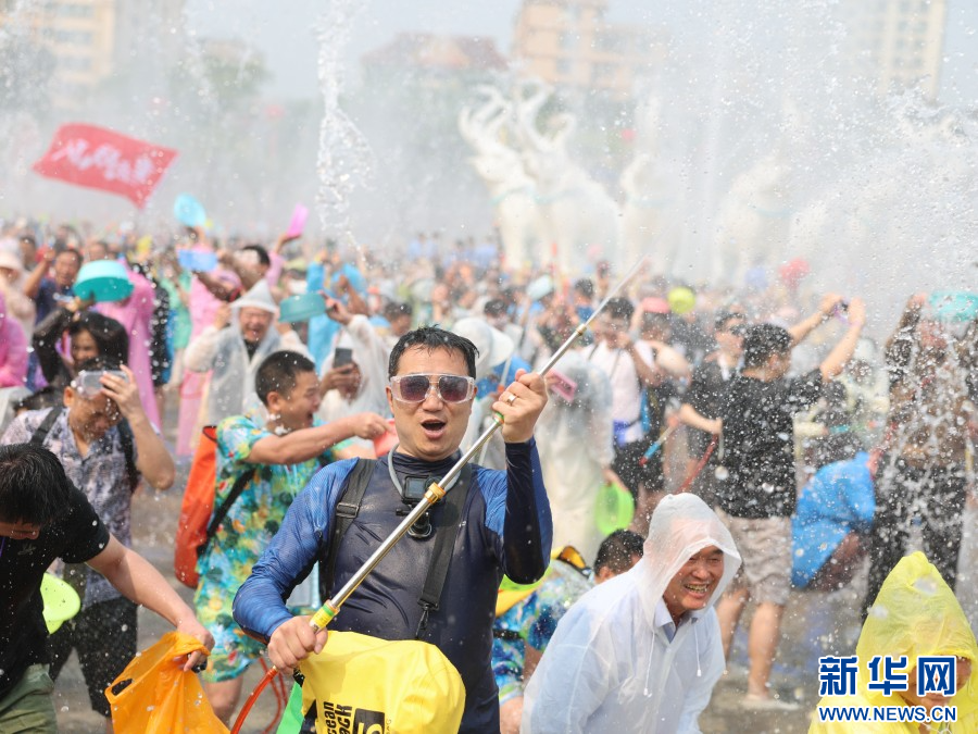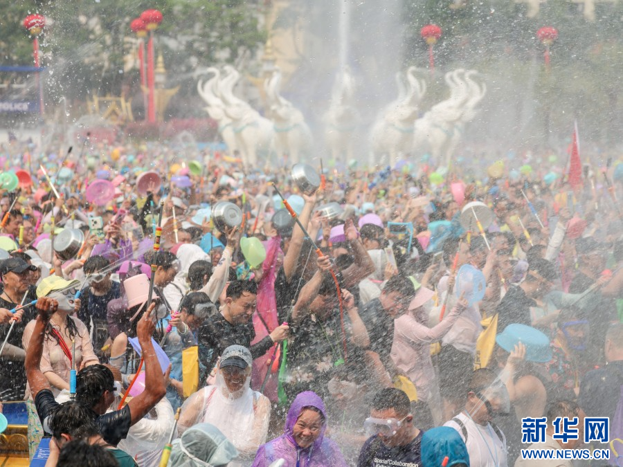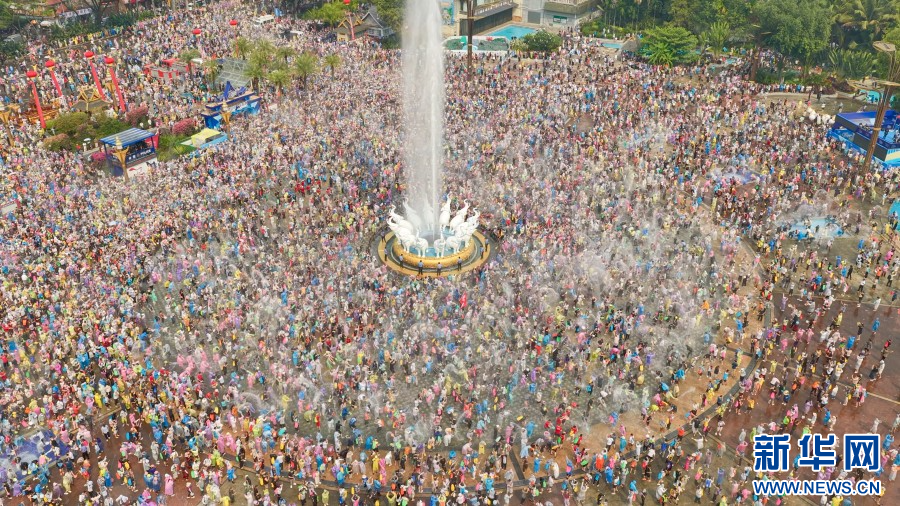 4月15日,云南省西双版纳傣族自治州万人泼水狂欢盛大启幕。市民、游客欢聚泼水广场,水花漫天飞舞,欢声此起彼伏,大家手持水盆、水枪尽情泼洒,互送祝福。(完)