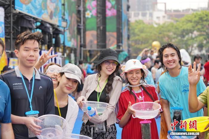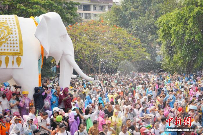 4月15日,各地游客在云南省景洪市共同庆祝泼水节。中新社记者 刘冉阳 摄