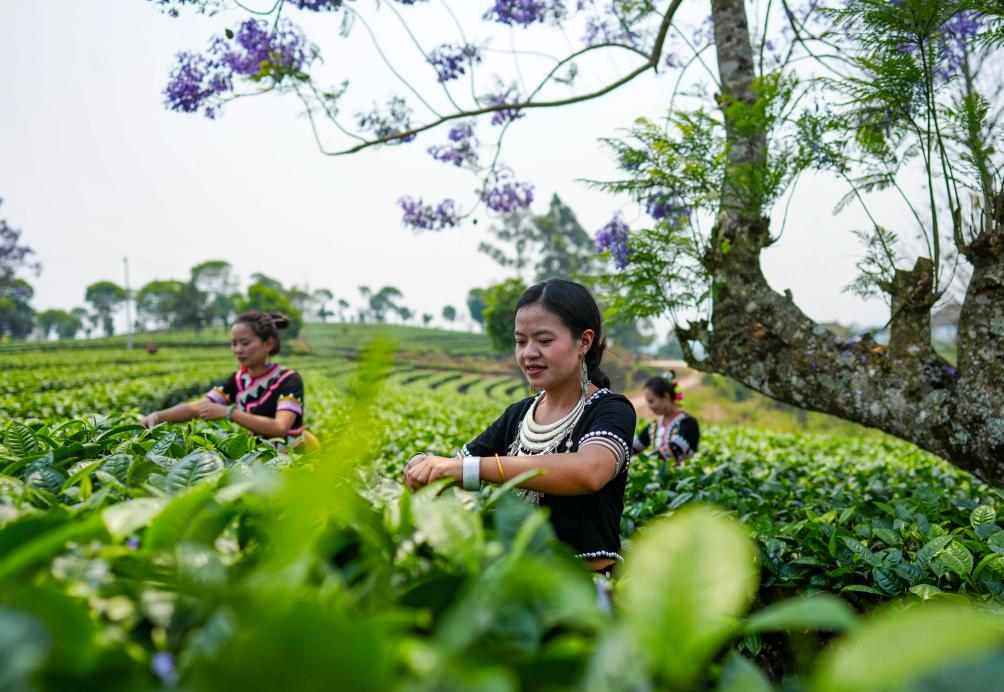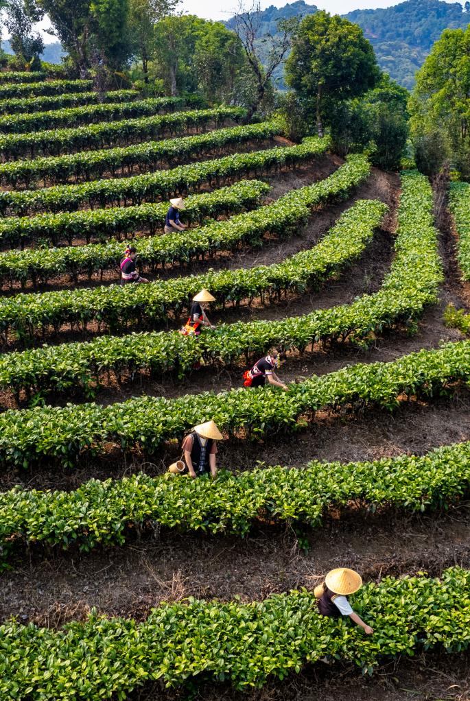 近日,云南省普洱市思茅区迎来春茶采摘季。茶农忙碌在层叠起伏的茶山间,绘就一幅春日美好画卷。