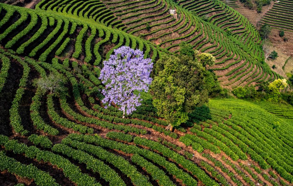 4月15日在普洱市思茅区倚象镇拍摄的茶山(无人机照片)。新华社记者 陈欣波 摄