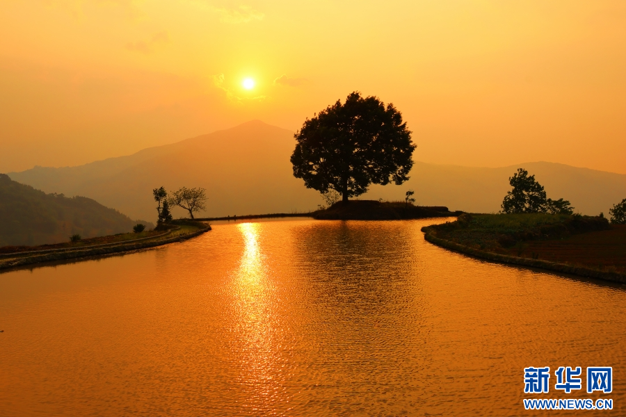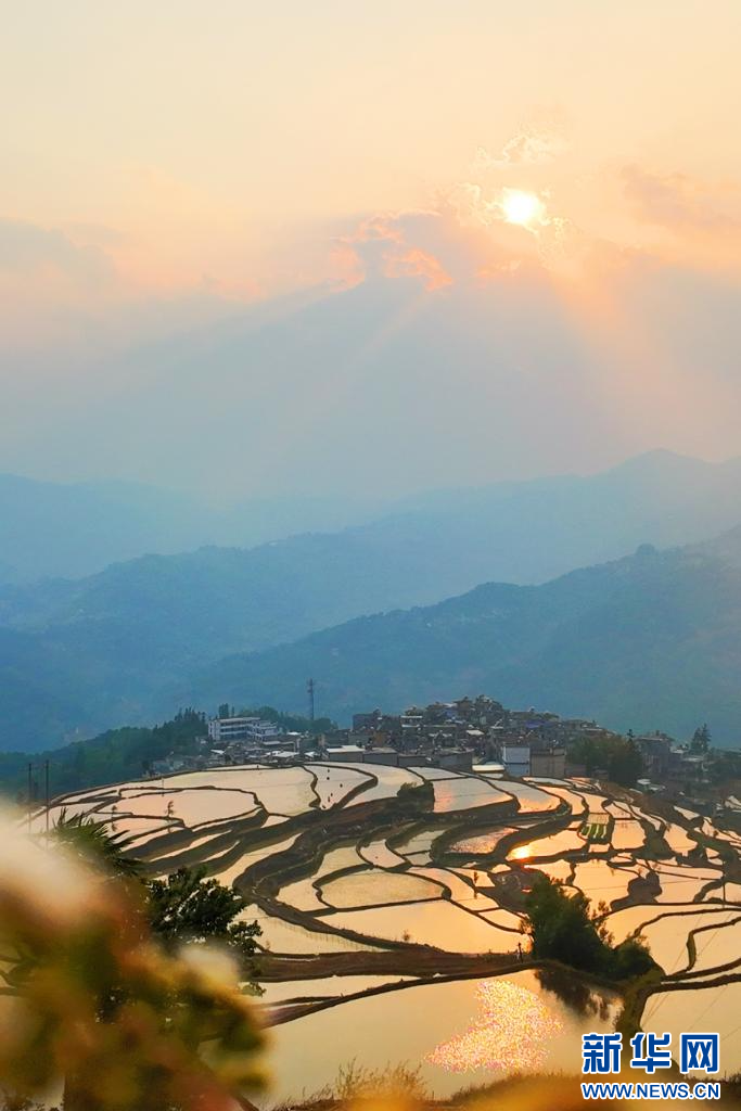 梯田落日(4月15日摄)。新华网发(红河县融媒体中心供图)