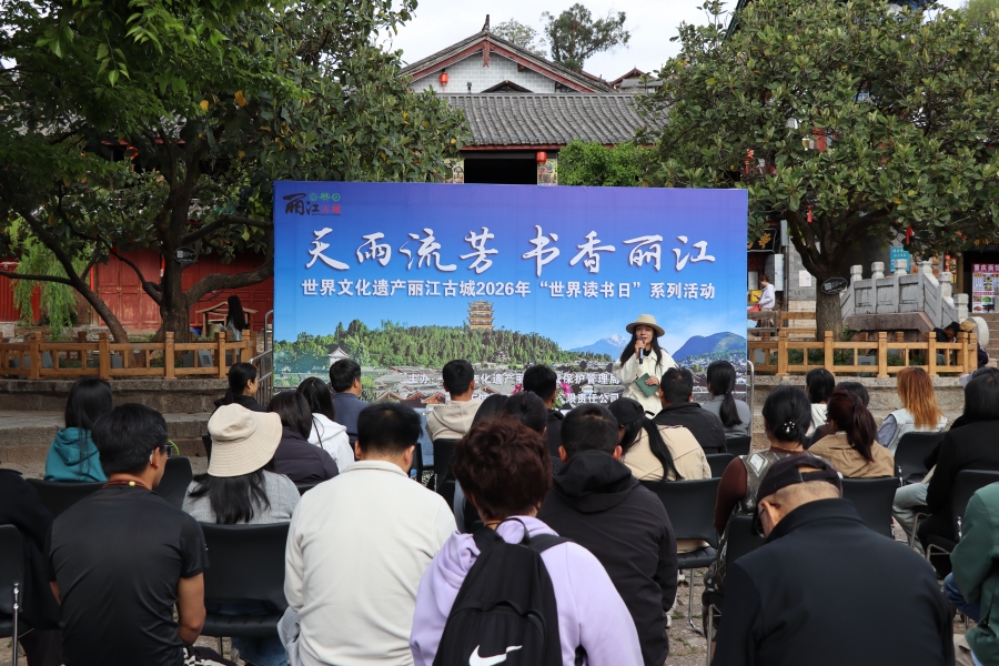 世界文化遗产丽江古城2026年“世界读书日”系列活动现场(4月22日摄)。