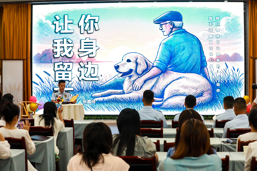 消防员朱磊分享《让我留在你身边》(4月23日摄)。郭元丰 摄