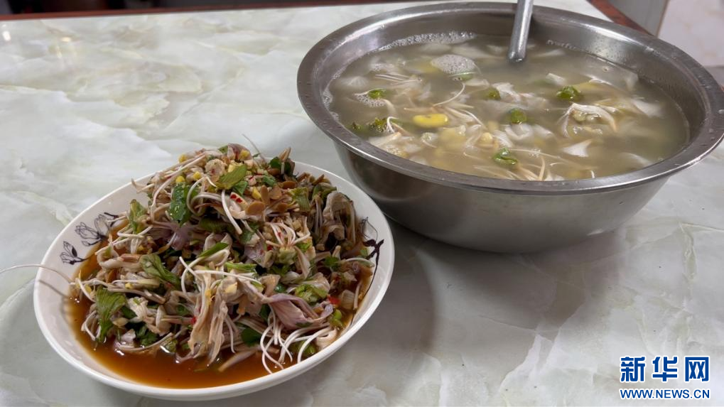 白露花制作的菜品(视频截图)。